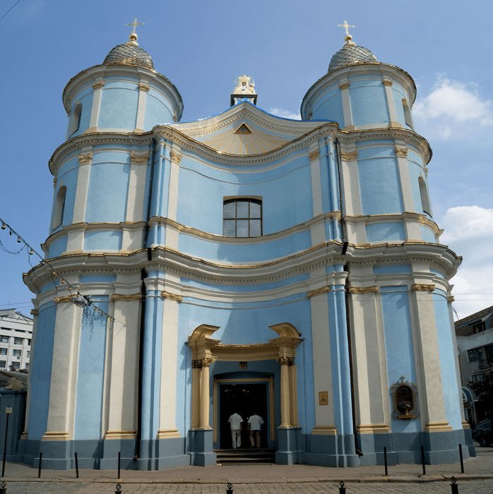 Вірменська церква (друге ім’я Вірменський костел) знаходиться в самому центрі Івано-Франківська, недалеко від Ратуші. В народі її також прозвали “голубою церквою”, за колір стін. Будувати почали на початку 18 століття. Вже у 1811 році відбулася перша перебудова, а у 1826 році – друга. Ця церква є класичним взірцем стилю бароко.
